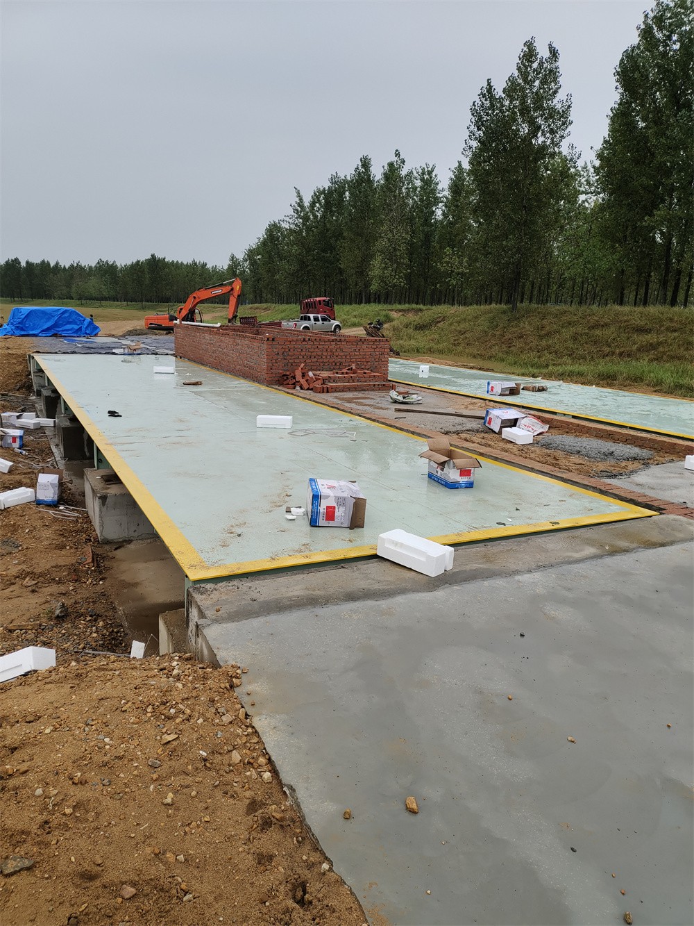 信陽商城上石橋李湖村河沙廠150噸雙向地磅施工案例